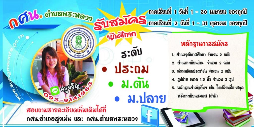 กศน.ตำบลพระหลวง รับสมัครนักศึกษา กศน.ประจำภาคเรียน 2 ปีการศึกษา 2563 ติดต่อสมัครได้ที่ครู กศน.ตำบลพระหลวง 095 9141963 ได้ตั้งแต่บัดนี้เป็นต้นไปนะคะ